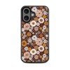 A: The phone case features a warm and elegant floral pattern inspired by autumn's rich colors.