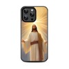 A: The case features an inspirational design showcasing Christ illuminated in radiant light, symbolizing hope and guidance.