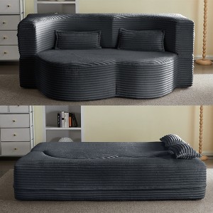 This multifunctional folding sofa bed is designed with practicality and convenience in mind, offering you a brand-new home experience. It comes vacuum-packed and requires no assembly. After unpacking, it will fully restore its original shape within 48-72 hours, saving you time and effort. Made with soft, breathable corduroy fabric and a foam structure, it offers a skin-friendly touch and strong support, combining comfort and durability. Its unique three-layer design allows it to be folded into a sofa for leisure and entertainment when not in use; when needed, it unfolds into a comfortable bed, and when not in use, it can be stored in a wardrobe or under the bed, effectively saving space. Whether it's an apartment, dormitory, loft, home office, or RV, it can be easily adapted to any space.