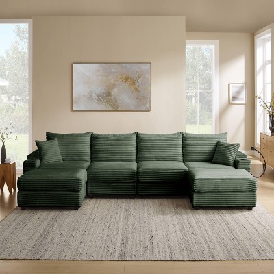 MYINDA Sectional Sofa Couch, Minimalist Combination, Convertible L/U Shaped Comfort Sofa with Removable Ottomans for Living Room