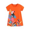 This charming summer dress features a delightful bird cartoon pattern that adds a playful yet refined touch. Designed with short sleeves and a comfortable fit, it keeps stylish girls cool and elegant during warm days. Perfect for casual outings or special occasions, this dress combines comfort with a sophisticated, youthful flair.