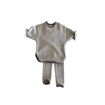 MyKids-USA Waffle Knitted Fabric Loose Comfy Set Grey 120 (5-7Y)