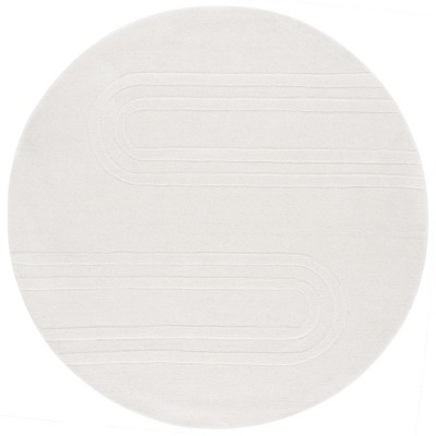 Transform your space with the elegance of our contemporary round area rug. Measuring 6 feet by 6 feet, this ivory masterpiece infuses warmth and style into any room with its gentle yet striking geometric pattern. Crafted with care in India, the rug features a unique blend of wool and cotton, offering a tactile delight underfoot. The hand-tufted weave technique enhances its allure, making it a stunning focal point for living rooms, bedrooms, or offices. At a height of five-eighths of an inch, this rug offers a cozy feel without overwhelming your space. Embrace the effortless charm and modern appeal of this beautifully crafted piece and elevate your home decor.