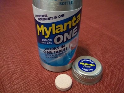 [This review was collected as part of a promotion.] What really caught my attention while looking through the antacid/anti-gas section of my local pharmacy was the sleek and stylish new bottle for Mylanta One. The "EcoCare" bottle is made of recyclable aluminum, which is a plus for those of us who are always searching for eco-friendly packaging. The combination of an antacid and anti-gas in a medication is not new, but I was intrigued by the Berry Ginger flavoring. The tablet seemed larger and chalkier than some antacids I have taken in the past, but the dominant berry flavor was appealing with an unexpected kick of ginger. Most importantly, within a short period of time the uncomfortable effects of acid indigestion and bloating were greatly lessened.