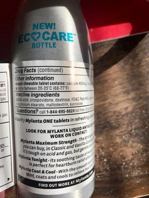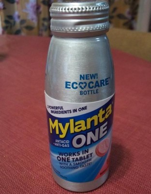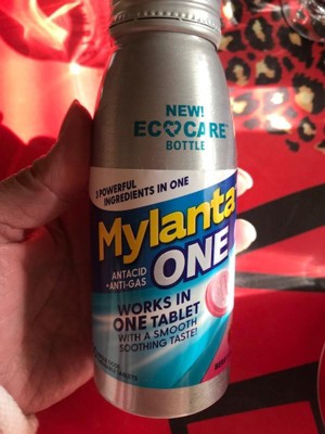[This review was collected as part of a promotion.] Mylanta ONE EcoCare Berry Ginger Flavor works! It contains 3 antacid and anti-gas ingredients in a single tablet. No more carrying 2 to 3 types of antacids around anymore. Mylanta One is a multi-symptom relief antacid that work's fast and has a great flavor. No more chalky taste. Mylanta One now comes in a new Eco-Care bottle that's made of recyclable aluminum. By recycling Mylanta One is doing their part to reduce plastic waste in landfill's and ocean's. Highly Recommended!