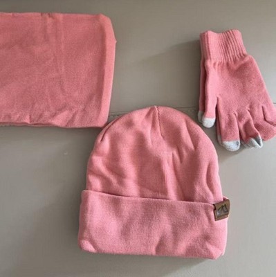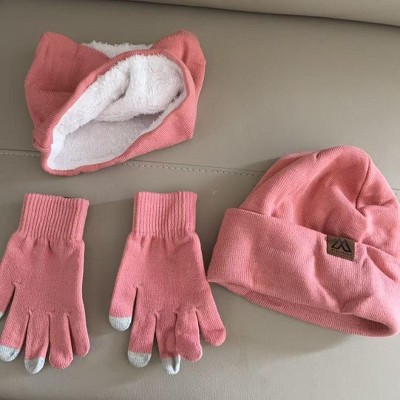 This winter set includes hat, scarf and touch screen gloves. I ordered the pink one. The color is beautiful. The material is soft and comfortable.