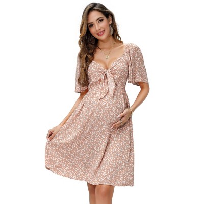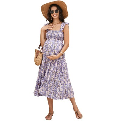 Embrace maternity fashion with our charming Summer Maternity Dress, designed for both comfort and timeless style. Crafted from 95% polyester and 5% spandex, this dress provides gentle stretch and breathability to accommodate your growing bump while keeping you cool in warm weather. The high waist design flatters your changing shape, while the A-line silhouette flows beautifully for a graceful look. Delicate floral patterns and charming lantern sleeves create a romantic peasant dress aesthetic, perfect for summer occasions. The sweetheart neckline adds a feminine touch to this prairie-inspired maternity essential. This versatile dress transitions easily from casual daytime outings to special maternity occasions, making it a must-have for your pregnancy wardrobe. The lightweight fabric drapes comfortably and maintains its shape wash after wash, ensuring lasting wear throughout your pregnancy journey.