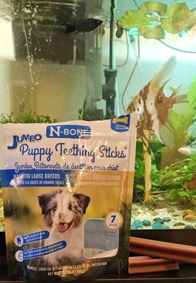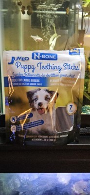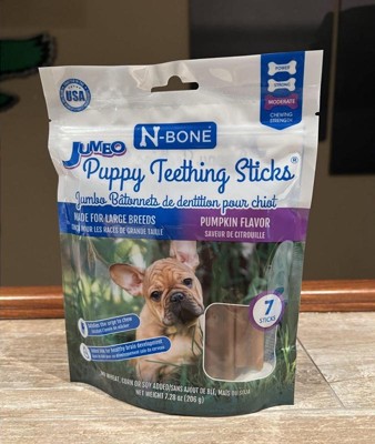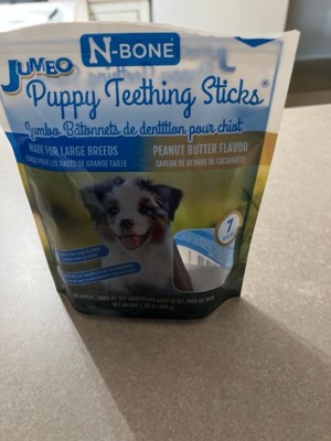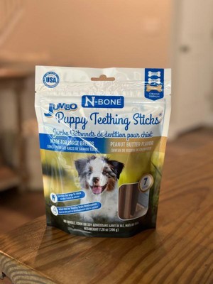 The N Bone Jumbo Puppy Teething Sticks in peanut butter flavor are a hit among guests and their dogs. Many appreciate the cute and resealable packaging, as well as the quality ingredients that promote dental health. The sticks are effective for both teething puppies and older dogs, providing a satisfying chew that keeps them engaged. Guests also note the good value for money, making these treats a great choice for pet owners looking to keep their furry friends happy and healthy.