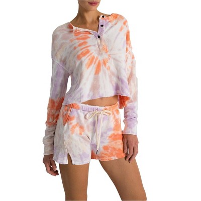 Inject some sizzle into your wardrobe with the n:philanthropy Womens Blackbird Deconstructed Sweatshirt. This sweatshirt, with its tantalizing tie-dye pattern, embraces the modern theme and defies the norm. It's not just an item of clothing, it's an audacious show of your personality. The distressed details add an intriguing edge to the overall aesthetics, alluding to your fearless sense of style.
