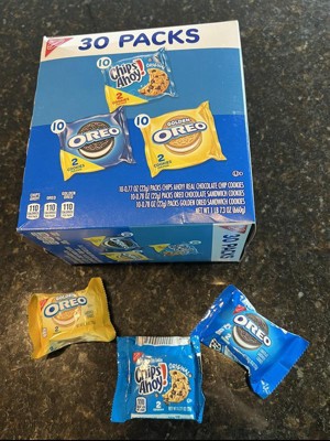 - Full-size OREO cookies and CHIPS AHOY! cookies in convenient snack packs