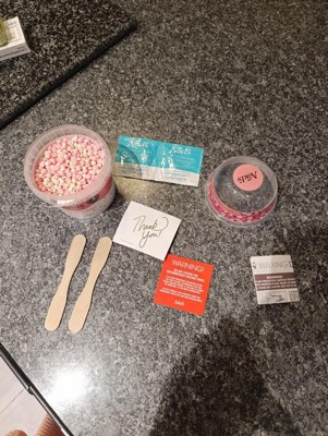 [This review was collected as part of a promotion.] I accidentally warmed it up with a thank you note inside the tub (rookie mistake!) so things got messy at first. Once I got past that, the instructions were really easy to follow, the wax melted smoothly in the microwave, and it had a sweet scent that made it much more pleasant to use. Application was simple and mess-free. Unfortunately, my leg hair wasn’t quite long enough this time, so it didn’t remove much but that’s on me. It was easy to remove and clean up & pain free. I’ll definitely be giving it another go once there’s more regrowth because the formula seems promising for a smooth finish.