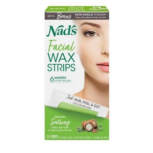 Nad's Facial Wax Strips make at-home facial hair removal easy and convenient. These hypoallergenic strips are ready to use—just rub, peel and go to remove hair from delicate facial areas, like upper lip and chin hair. The soft, flexible strip shapes to your facial curves to target all angles, while the wax formula with soothing shea butter gently and easily removes short hair by the root for long-lasting smooth skin. Use the Post-Calming Oil Wipes to remove excess wax and soothe freshly-waxed skin.