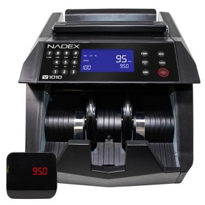 The Nadex™ V1010 Bill-Counting Machine provides fast, accurate bill handling for banks, retail, and businesses. With batch and value counting modes, it adapts easily to various cash management needs. Equipped with UV(A) and UV and MG(A,B) counterfeit detection, it ensures only genuine currency is processed. Operating quietly and counting over 1,000 bills per minute, the V1010 maintains a peaceful workspace. Its compact build and retractable handle allow for easy portability and setup in any environment.