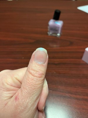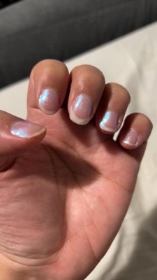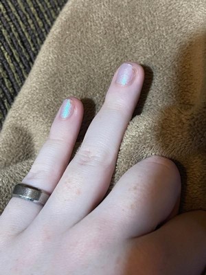 [This review was collected as part of a promotion.] This nail polish is cute. It’s fast drying and the packaging is great. The color is kind of sheer so I had to layer it up but it has that early 90’s iridescence that reminds me of Bonnie bell. Might look better on extensions with a gel top coat my nail beds are trash right now