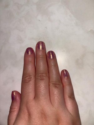 [This review was collected as part of a promotion.] I love my new nail polish, glides on easily. The color is very pretty and the shimmer in it gives it a goldish hue which is super pretty. I love that it dries in 45 seconds.