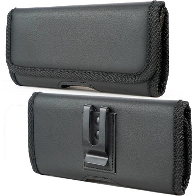 Nakedcellphone Pouch for Consumer Cellular Iris Flip Phone - Canvas Case with Clip and Belt Harness Holder, Magnetic Closure - Black