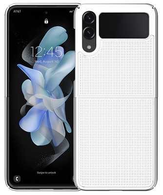 PHONE COVER: The case is composed of two hard shell covers that snap on the rear top/bottom panels. Your Z Flip-4 phone remains fully functional in the case with cutouts to access all buttons, charger, camera, speaker. You can still flip the phone open and closed as normal. Elevated lip makes you camera and exterior screen recessed for protection. The case is made of hard polycarbonate that has been treated with a powder coating for extra durability. Case also has ribbed grid pattern for enhanced tactile grip.