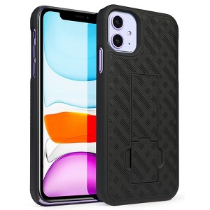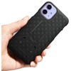 This slim cover is a hard shell that snaps on the back of your iPhone 11. The case is made of hard polycarbonate that has been treated with a rubberized spray powder coating for extra durability. Case also has ribbed weave pattern for enhanced tactile grip. Your phone is functional in the case with access to all buttons and ports.