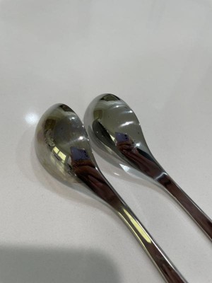 The flatware is beautiful. However I followed the suggestions to rinse the flatware before putting it in the dishwasher. After one wash (using Cascade complete)the back of the spoons were discolored I’m keeping them but will wash by hand