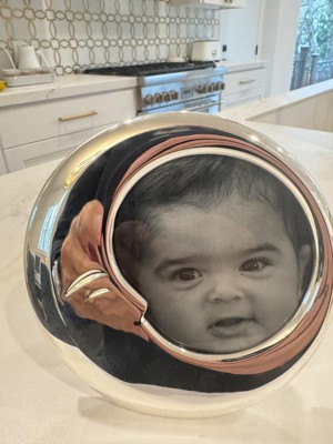 Nambé Moon Collection Silver-Plated Round Photo Frame – 6.25" Artistic Crescent Design with Glass Insert, for Desk, Mantel & Modern Home Décor, Silver