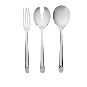 Embodying the beauty of organic form, the Frond Stainless Steel Serving Utensil Set captures the artistry of nature through its gracefully curved handles and angled stem detailing. Forged from 18/10 stainless steel, this three-piece serving set includes a serving spoon, slotted serving spoon, and serving fork, each designed to balance function and elegance at the dining table. Whether displayed in a bowl or set beside your main course, every utensil reflects the shimmering sophistication of finely crafted stainless steel flatware. The Frond collection brings a sense of sculptural artistry to modern dining. The gentle contours and fluid shape make these utensils both decorative and functional. Use the serving spoon for vegetables and grains, the slotted spoon for dishes that need straining, and the fork for meats, salads, or pastas. Each piece is thoughtfully designed for balance and comfort in hand, ensuring a refined dining experience for family meals, buffets, and celebrations alike. This stainless steel serving utensil set resists tarnish and corrosion, offering enduring beauty with minimal maintenance. Its versatile style complements a wide range of flatware and tableware designs, from contemporary to classic. Dishwasher safe for everyday convenience, this set effortlessly enhances your dining presentation while highlighting your attention to detail. Bring artistry and function together with the Frond 3-piece stainless steel serving utensil set, designed to elevate any meal.