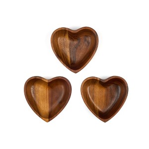 Product Name: Nambé Small Heart Bowls, Set of 3 - Acacia Wood Compact Prep & Snack Bowls, 4.75" x 5"