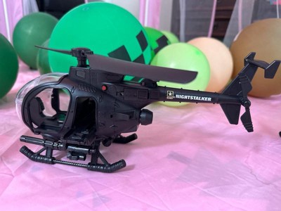 [This review was collected as part of a promotion.] This helicopter looks like it could have been fun. Unfortunately we never got to use it. It is very fragile and has small plastic pieces that break very easily. A small part broke on the top rotor and we were unable to repair it. My husband is a mechanic and we took the time to try to fix it but we didn’t have any luck. The controller takes 6 batteries.