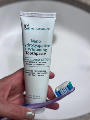- M3's Nano Hydroxyapatite Toothpaste is meticulously designed with safe and effective ingredients that quickly restore freshness. Our whitening toothpaste contains aloe leaf extract, green tea extract, calcium carbonate, and are a hundred percent safe for sensitive teeth.