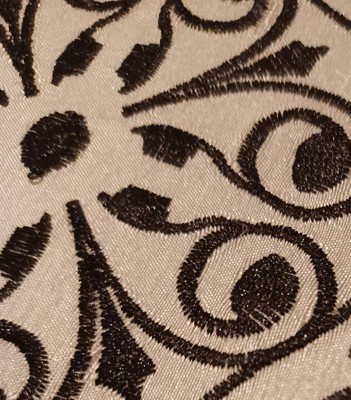 [This review was collected as part of a promotion.] This comforter set has the most gorgeous pattern and colors with it not being over the top. They kept the bedskirt an only color with no pattern complementing the comforter and pillows perfectly! I did find a great deal of threads throughout the set and am unsure if it is coming off the pattern. Also there seems to be inconsistent work on the pattern, some sections look filled in and others have wider spacing. Other than those small concerns the set is beautiful and non-irritating when touched.