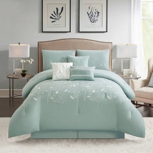 Elevate your bedroom with our 7-piece comforter set, expertly crafted to infuse chic style and a captivating botanical theme into your space. Using intricate chain-stitching embroidery techniques, the set showcases a stunning 3D floral pattern, adding depth and sophistication to your decor. Versatile for all seasons, this set is as practical as it is stylish. Meticulously crafted with brushed microfiber fabric, known for its breathability and high tensile strength, the comforter ensures durability while delivering an irresistibly soft and comfortable feel.