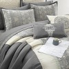 Step up the style of your bedroom décor with this gorgeous 8 piece comforter set. The rich tones of silver and ivory in stripes, damask, and Moroccan-inspired patterns is all you could ever want. Polyester fill provides a plush comforter and decorative pillows, while the faux silk and matte satin make falling into bed an absolute delight. Constructed of 100% polyester fabric and filling, this bed set comes with 1 comforter, 2 shams, 2 Euro shams, 2 decoratvie pillows, and 1 bedskirt that flaunt excellent workmanship and quality. The complete bed set built to last, this bedding set is made with strict quality control standards and comes with everything you need for a complete bedroom makeover. Made with high strength polyester, this beautiful bedding set can be machine washed and dried on a low tumble setting for easy care.