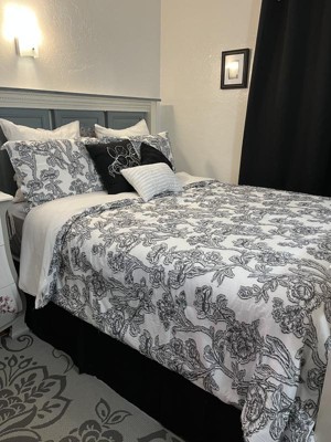 [This review was collected as part of a promotion.] The Maybole 7-Piece Comforter Set brings elegance to your bedroom with its timeless black and white floral design. It's a chic and complete choice for a queen-size bed. And also, it has a lot quality.