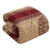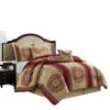 [This review was collected as part of a promotion.] This is a nice and vibrant colored comforter set. I love the color scheme of reds and gold on the top and the pattern incorporated. It is a little busy in terms of the patterns and shapes when you look at it close up but it looks good overall when you step back and look at it. The material and construction is well done and sturdy. The weight of the comforter will work for us most of the year as we prefer light weight comforters. The set includes decorative pillows which is really nice because you get the whole coordinated look and don’t have to worry about finding separate pillows.