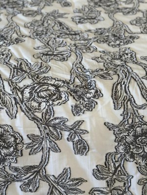 Embrace the timeless allure of our 7-Piece Floral Comforter Set, an exquisite addition to your bedroom decor. This captivating set features a striking black and white color palette that effortlessly complements any interior style. Using the innovative Clip Jacquard technique, the floral patterns are intricately woven into the fabric, creating a stunning visual effect. The set includes a sumptuous comforter, stylish bed skirt, coordinating shams, and decorative pillows, offering a complete and cohesive look for your sleep space.