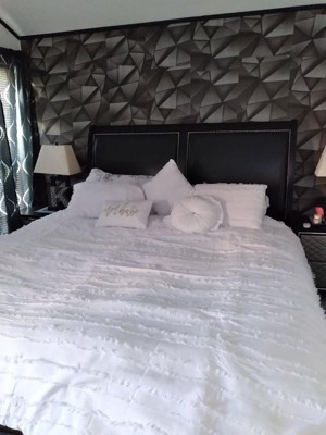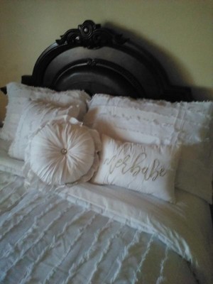 [This review was collected as part of a promotion.] Love the crisp white look, it’s timeless and adds a touch of elegance to your bedroom! However, it’s just for looks. It’s not that warm and it’s not that cozy, but I just put my white down comforter underneath and it does the trick. Again, it is a timeless look and I love that it came with the pillows and charms.