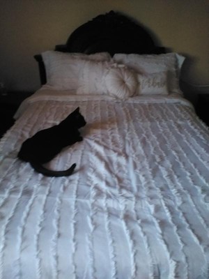 [This review was collected as part of a promotion.] I am so happy to try the Dressy 7 piece fringe comforter set. It looks nice and feels very soft. This set is such a great addition for sprucing up the bedroom and or guest room. I can't keep Bruno off of it!