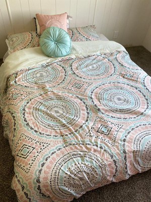 Experience the luxurious feel of cotton-touch microfiber with this beautifully crafted comforter set, designed for quiet, restful sleep without the rustling of traditional bedding. Featuring a mesmerizing large-scale medallion print, it instantly elevates your bedroom décor with elegance and charm. Made with strict quality control standards, this durable and stylish set is built to last, offering both comfort and sophistication for a complete bedroom refresh.