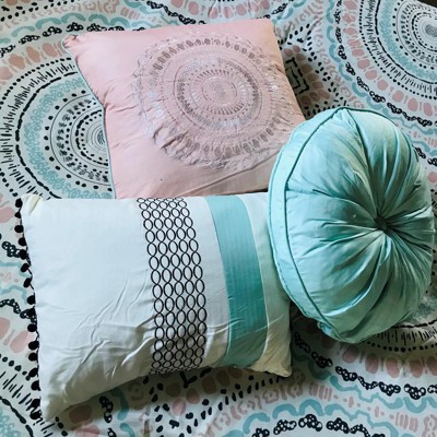 Includes: Bed Skirt, 2 Shams, Comforter, 3 Decorative Pillows