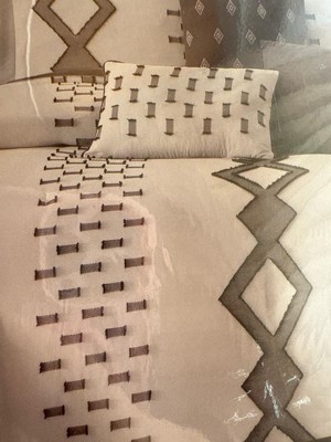 Featuring a stunning clipped technique, this comforter set showcases a textured geometric pattern that effortlessly blends boho and modern styles for a chic and classy look. The intricate design adds depth and visual interest, making it a captivating focal point in any bedroom. Crafted from high-quality materials, this comforter set provides a soft and cozy feel, ensuring comfort and warmth throughout the night. Ideal for those who appreciate a blend of contemporary flair and relaxed sophistication, this set enhances any space with its stylish and inviting aesthetic.