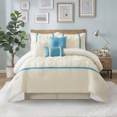 Includes: Bed Skirt, 2 Shams, Comforter, 3 Decorative Pillows