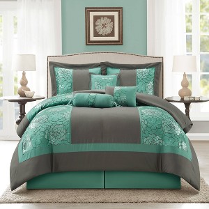 Includes: Bed Skirt, 2 Shams, Comforter, 3 Decorative Pillows