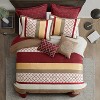 [This review was collected as part of a promotion.] For once, the photos of the product does a very accurate job of describing what you get. This is a full set to complete the look as you see in the photo. You get 4 pillow shams for the two style of pillows (both of which are lightly padded), you get the two mini pillows as pictured, you get the comforter, a bed skirt, as well as a throw. So a lot is included!! For the price, it's a very complete set. The only things you don't get are the two fitted bed sheets. I washed the sheets and didn't notice any bleeding. The only drawback to the set is the texture (especially with the stitching) is a bit rougher than I like. I like things super soft though, so it may be perfectly fine for you depending on your preferences here.