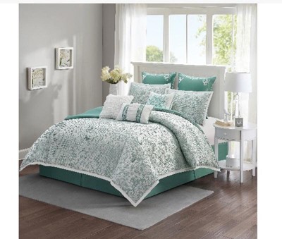 - Set Includes: 1 Comforter, 2 Pillow Shams, 2 Euro Shams, 1 Bedskirt, 3 Decorative Pillows