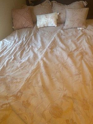 This elegant 7-piece comforter set brings timeless charm and texture to your bedroom with its beautifully woven jacquard floral design. The tone-on-tone pattern offers a refined, romantic touch, while matching solid microfiber accents are crafted with detailed piece work techniques for a sophisticated, layered look. Soft, breathable, and designed for year-round comfort, this set creates a serene and stylish retreat where relaxation comes effortlessly.