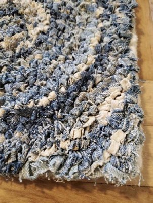 I like that this rug is 100% cotton. I didn't realize it was recycled demon, but that's cool I suppose. I does shed a bit and I vacuumed it a few times and it filled up my vacuum canister very quickly. Hopefully shedding will stop soon. It's very thick and doesn't fit under a door but that's ok. It smells a little strong but hoping that will go away with time as well. Overall I really like it and am happy with my purchase.