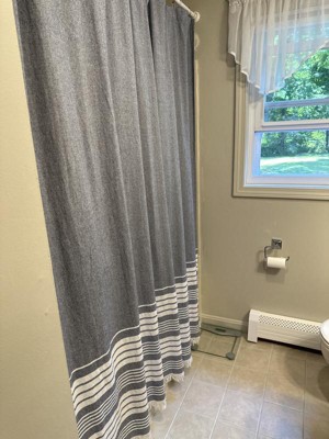 [This review was collected as part of a promotion.] I bought the NANTUCKET-YARN DYED COTTON TASSEL FRINGE shower curtain for my bathroom. It looks so nice! It’s a 72x72 so it’s more than enough to go side to side on my shower with out letting the water out. It’s made of really nice quality material that has held up really well so far. I am very impressed at how nice and clean it makes everything look. The tassels on the end give it an elegant touch my bathroom needed. I highly recommend the Nantucket Yarn Dyed curtain for anyone looking to style up there bathroom.