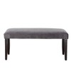This velvet covered bench adds an elegant and comfortable accent to any room. Whether paired with a dining set or placed at the end of a bed or in a hallway, the Napoli bench is ultra comfortable with its decadently soft velvet cover and memory foam top. The gray color and black finished solid wood legs and will complement many decorating styles.