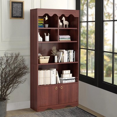 Narrow Bookshelf 6 Tier Tall Bookcase Skinny Storage Rack Rustic Shelf Metal Frame Small Freestanding Bookshelves