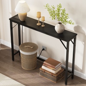 Narrow Console Table with Power Outlets, Compact Sofa Table