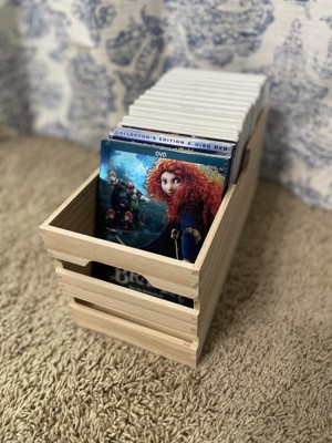 This wooden bin is a good size for books, dvds or for a kids room or anywhere. I like the raw wood since it can be personalized with paint. It's lightweight, so I don't think it will handle heavy things, but seems sturdy enough for most things.